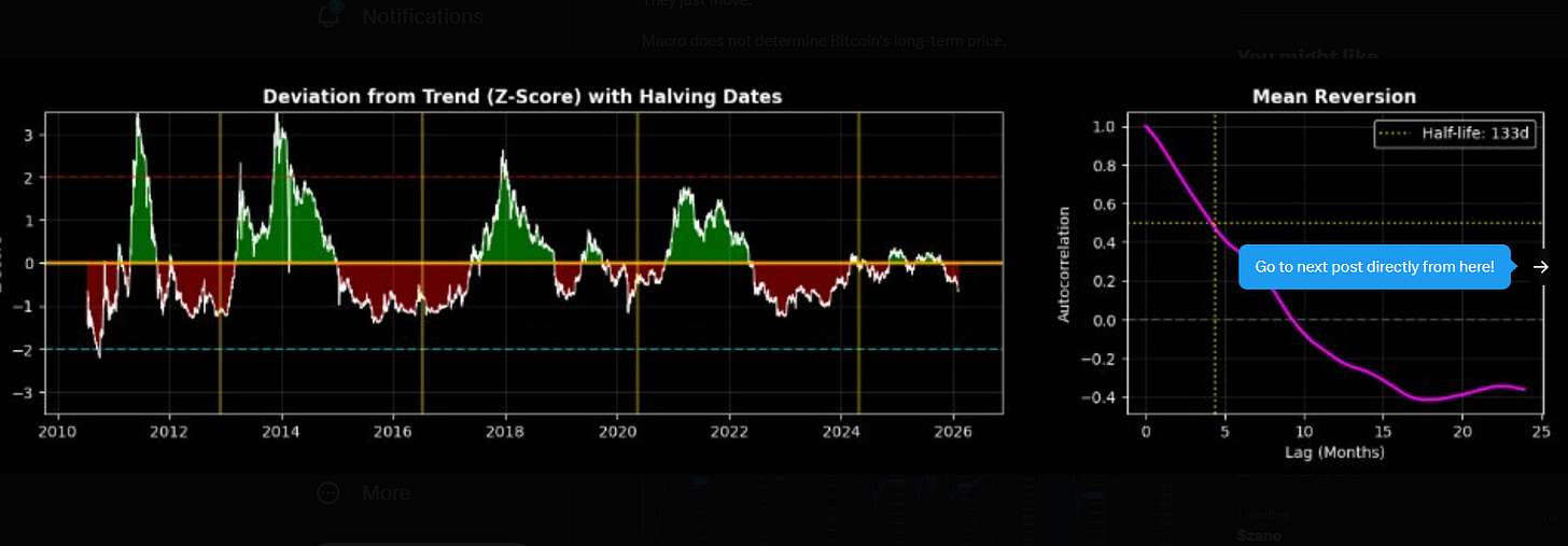 At this point after every prior halving, Bitcoin was above trend: