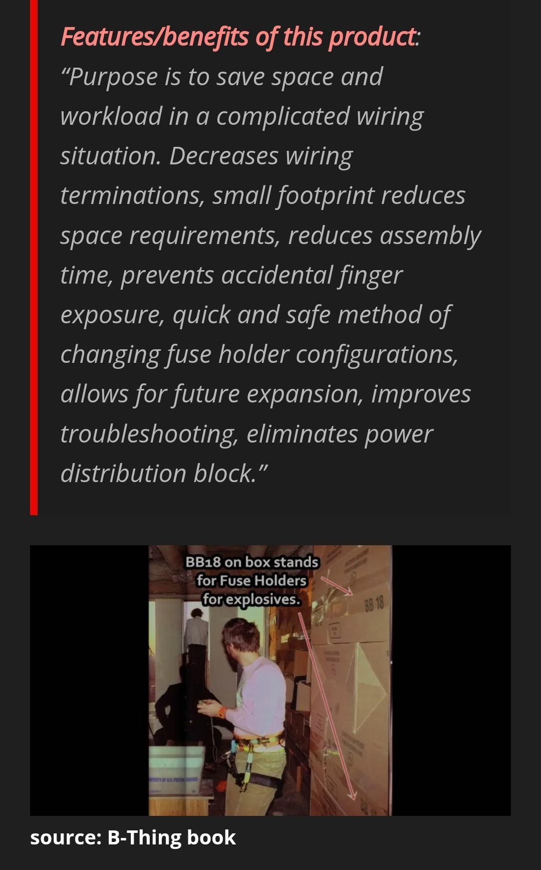 BB 18 is the model number for a fuse-holder accessory, designed for rapid (and flexible configuration) demolition wiring of a building, as described: