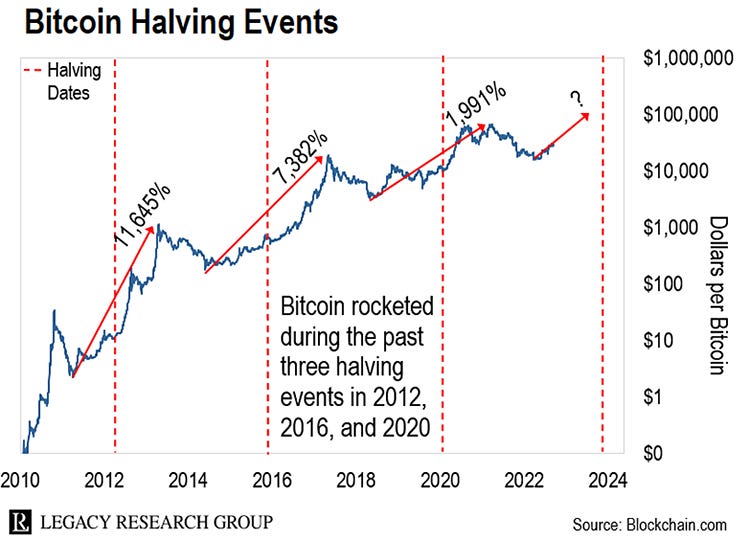 As you can see above, the halving is a huge catalyst for bitcoin. If history is any indicator, the 2024 halving will push bitcoin to new highs and beyond